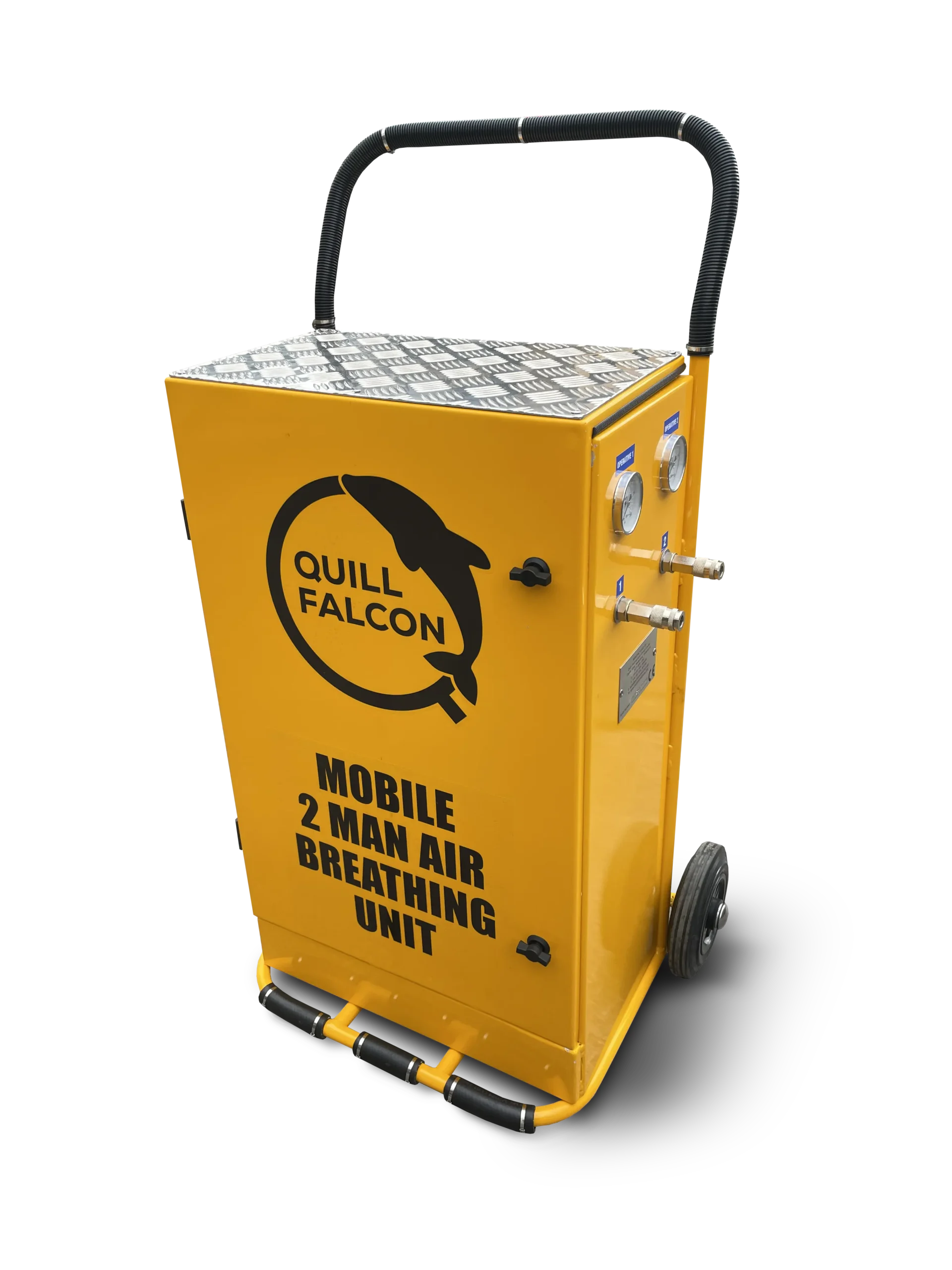 The Quill Falcon Mobile 2 Man Air Breathing Unit provides a reliable source of high purity air for up to 2 operatives and can be supplied with airline breathing harnesses and Scott RAS masks. There is an integrated control panel for monitoring individual operatives air supply and the unit has 2 robust wheels so the unit can be wheeled around site easily.
